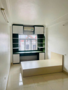 Nhà thiết kế cầu thang về cuối, cửa thoáng đãng, ngõ 1 dãy nhà. Với tầng 1: Bếp , để xe. Tầng 2,3,4 mỗi tầng 1 phòng ngủ to và 1 nhà tắm. Tầng thượng phòng thờ và sân phơi